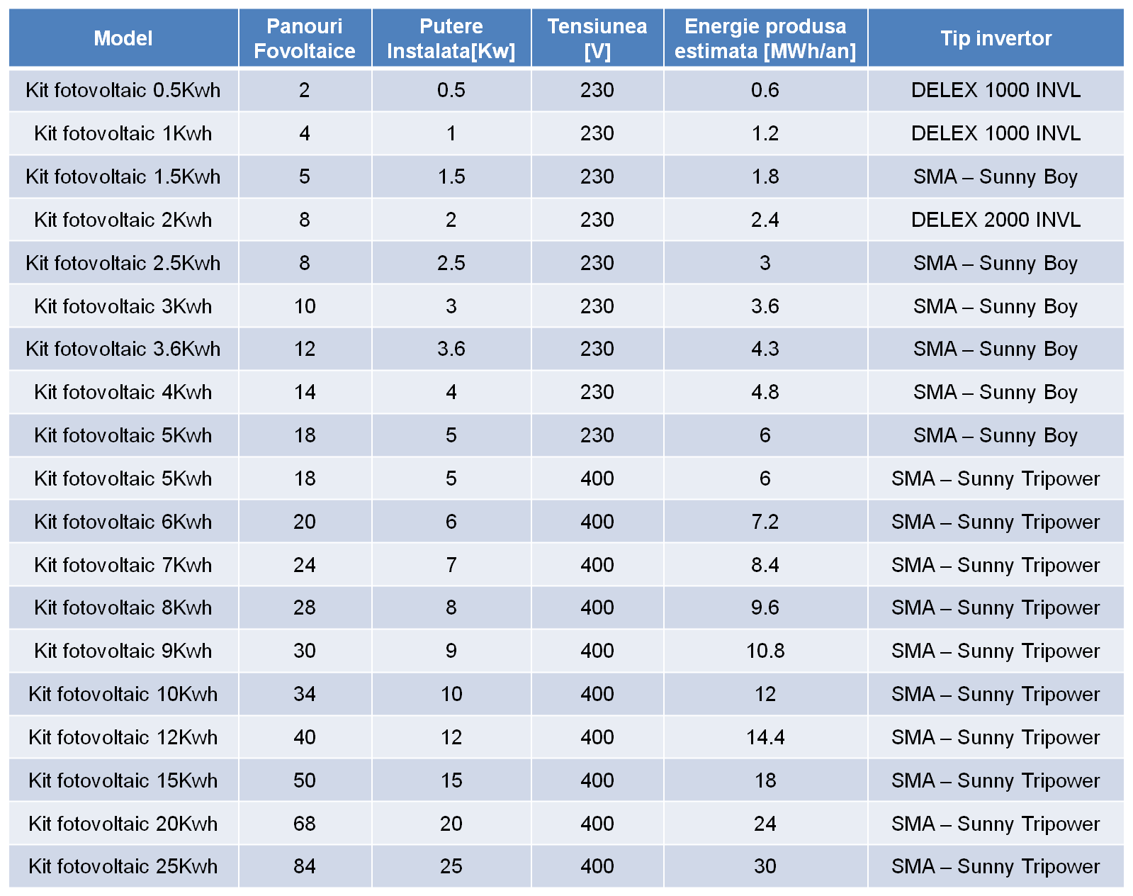 Kit-urile sunt diponibile in mai multe variante de putere.